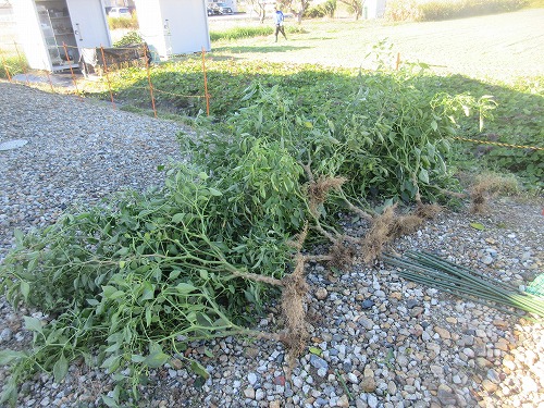 ナスも支柱を外して片付けます