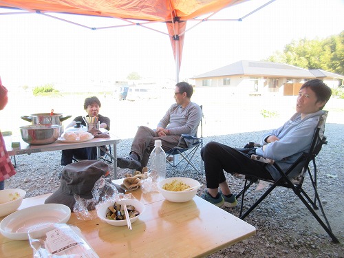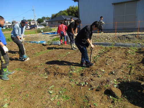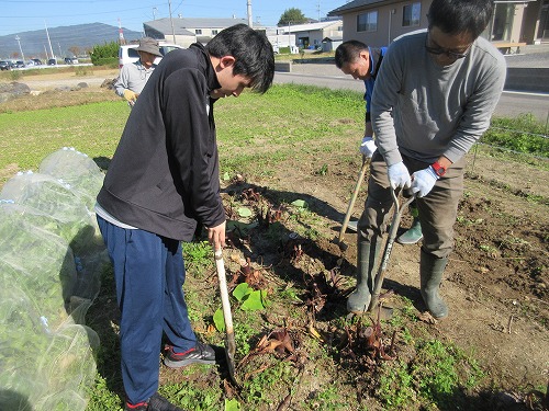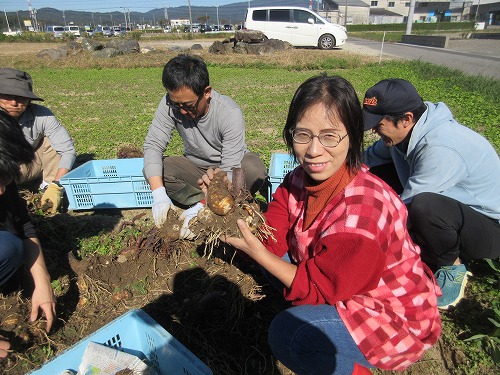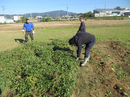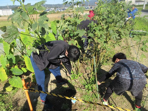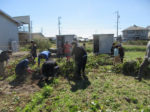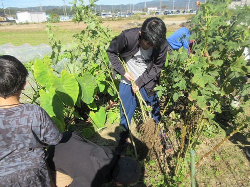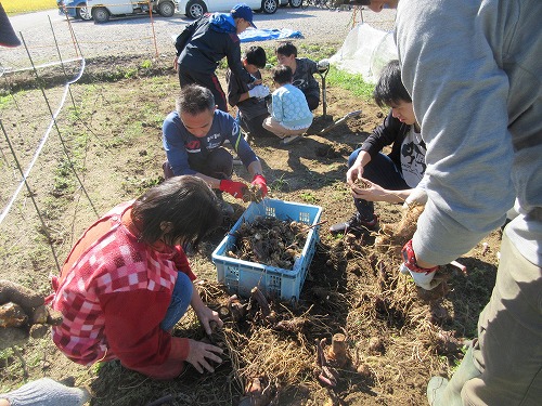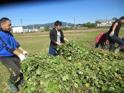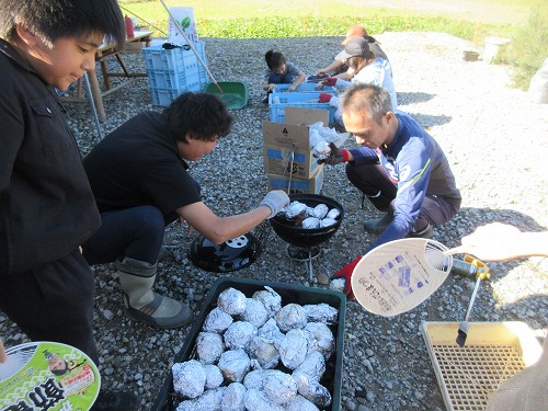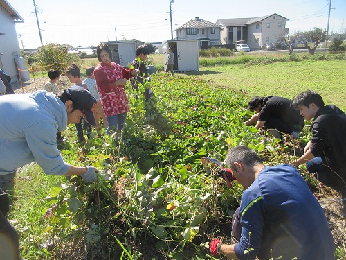 11月9日(土)、 あさひ菜園において標記行事が開催されました。 爽快な秋晴れの下、 朝からテントやテーブルをセットした後、 まずは夏野菜の片付けを… その後、 落花生、 里芋、 サツマイモの収穫を進めました。 おかげさまで今年も大豊作。 自然の恵みに感謝です。 お昼はいつも通りの焼きイモと菜園長お手製カレーライス。 カレーはいつも大好評であっという間に無くなってしまいます。 その後、 焼き芋と収穫した野菜を手土産に一時解散。 夕方からはカラオケ大会。 有志が集い楽しく歌いました。