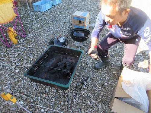焼き芋用のコンロをスタンバイ