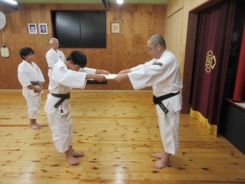 新たに3名が准拳士初段の允可を受け、2名が昇級しました。生涯修行のこの道を引き続き邁進ください!