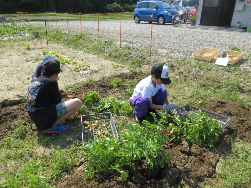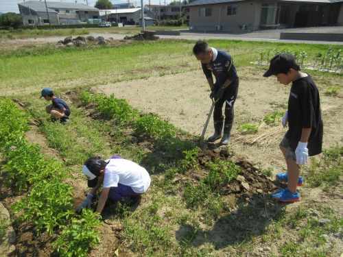 6月8日(土)午前中、 道場横の「あさひ菜園」でジャガイモを収穫しました。