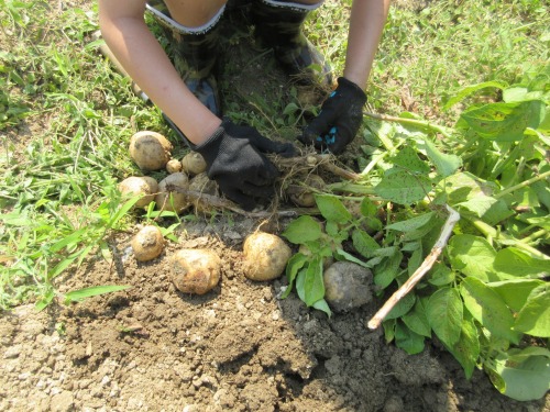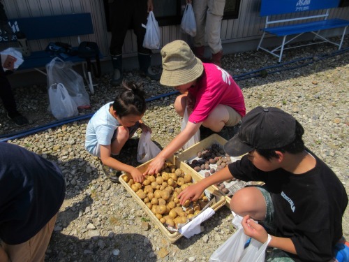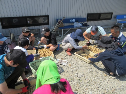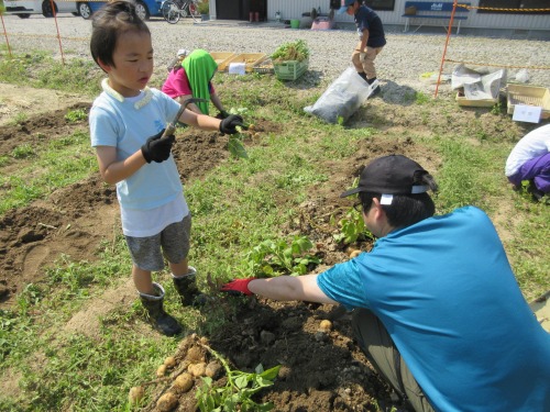 集まった有志で協力しながら掘りました。時期がちょっと早いかなと思いつつ掘ってみれば…小粒ながら今年も豊作!