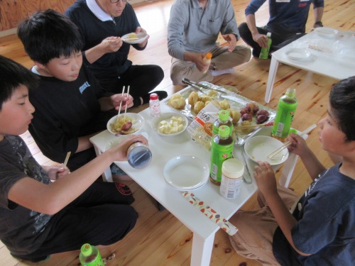 作業後には菜園長が獲れたてのジャガイモを蒸かしてくれ、 春の味に舌鼓を打ちました。
