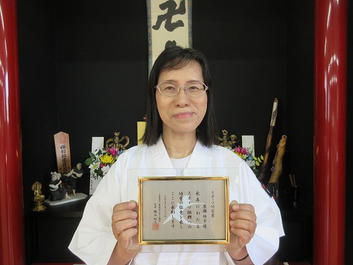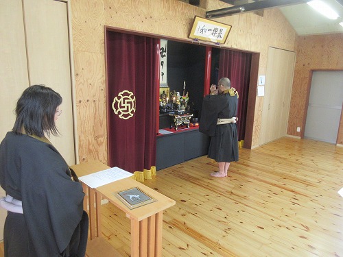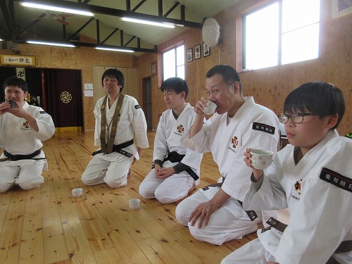 4月5日(土)、 新年度にあたり道院幹部に委嘱状を授与しました。 新たに助教が一名増え心強く感じます。 続けて、釈尊の生誕を祝う「灌仏会」 を執り行いました。 「釈尊の正しい教え」と「達磨の遺法」は目的達成に向けた方便。 開祖の想いを忘れることなく、平和で豊かな理想境建設を目指し、この道を邁進してゆきたいと思います。 終了後は恒例の甘茶を頂きながらの歓談。 豊田市スポーツ協会のスポーツ功労賞を受賞した副道院長をねぎらいながら、 楽しいひとときを過ごしました。