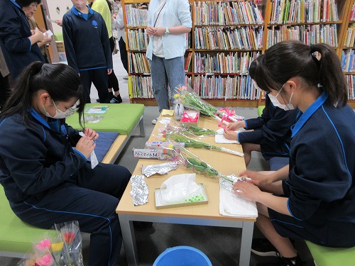お誕生日会の花を中学生ボランティアが作ってくれます(^^)