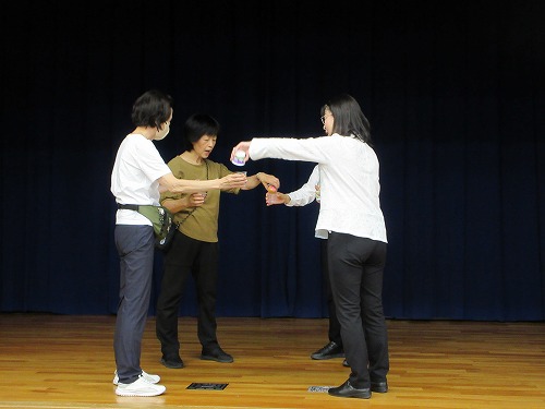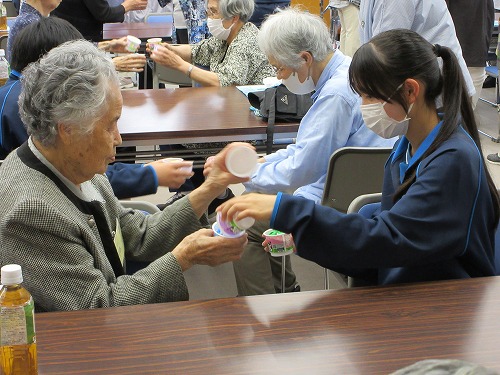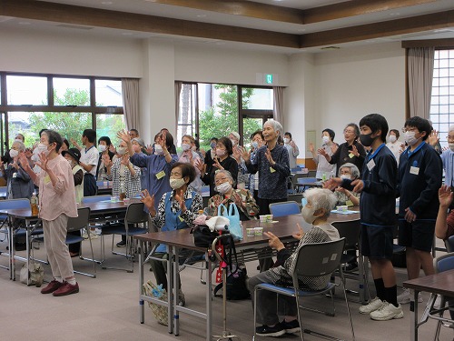 司会者のアイデアで、中学生ボランティアと楽しく交流しました