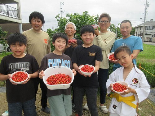 5月10日(土)、修練前に2回目のさくらんぼ収穫をしました。 一週間を経てほぼ完熟!