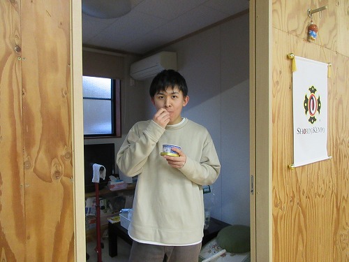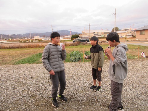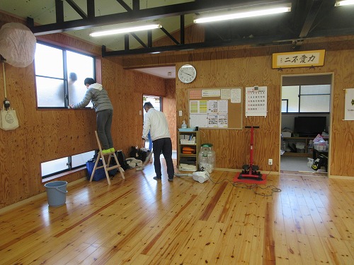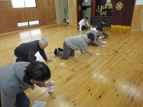 恒例の大掃除をしました。 晴天で冷え込む中、 10名の参加がありました。 終了後のお約束は、 この寒さでも子ども達はアイス(@o@;) 大人は温かいほうじ茶にしました。 新年にはピカピカの道場で修練スタートです!